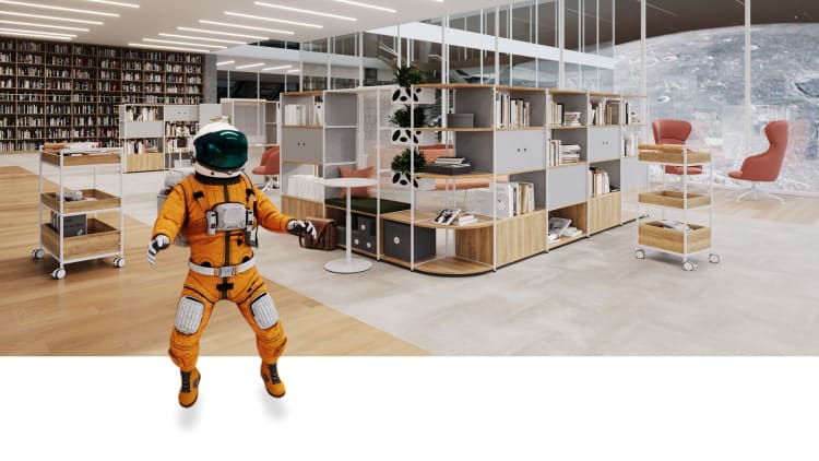 Das ACTA.PRO Regalsystem kreiert neue Dimensionen der Raumgestaltung und transformiert Büros mit Lichtgeschwindigkeit in andere Sphären.