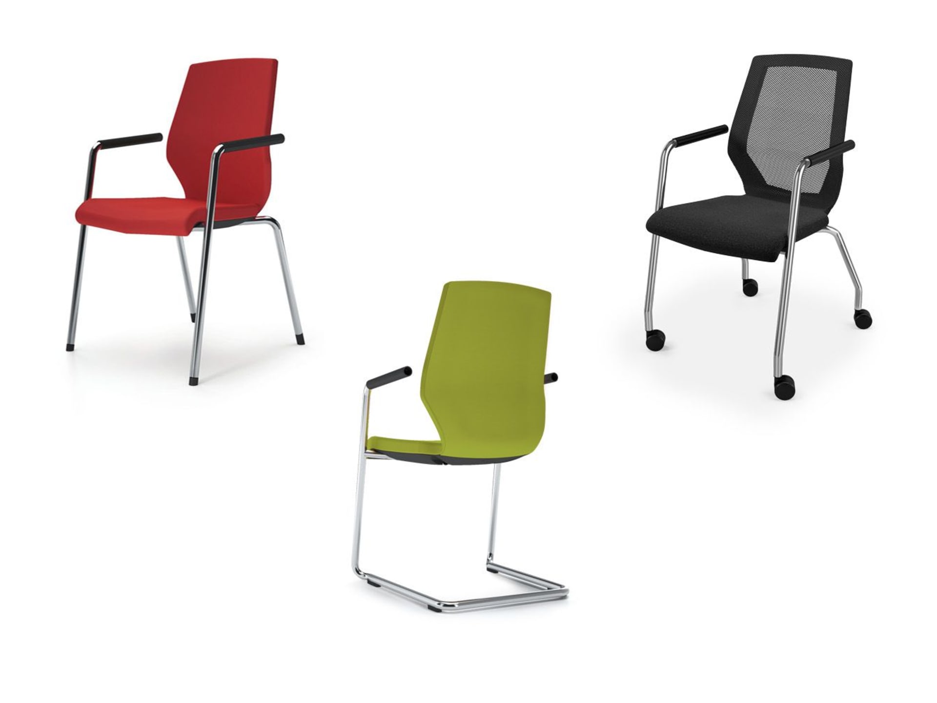 Wahlweise als Freischwinger oder Vierfuß mit und ohne Rollen erhältlich - stapelbar. Getestet für Personen bis 130 kg.