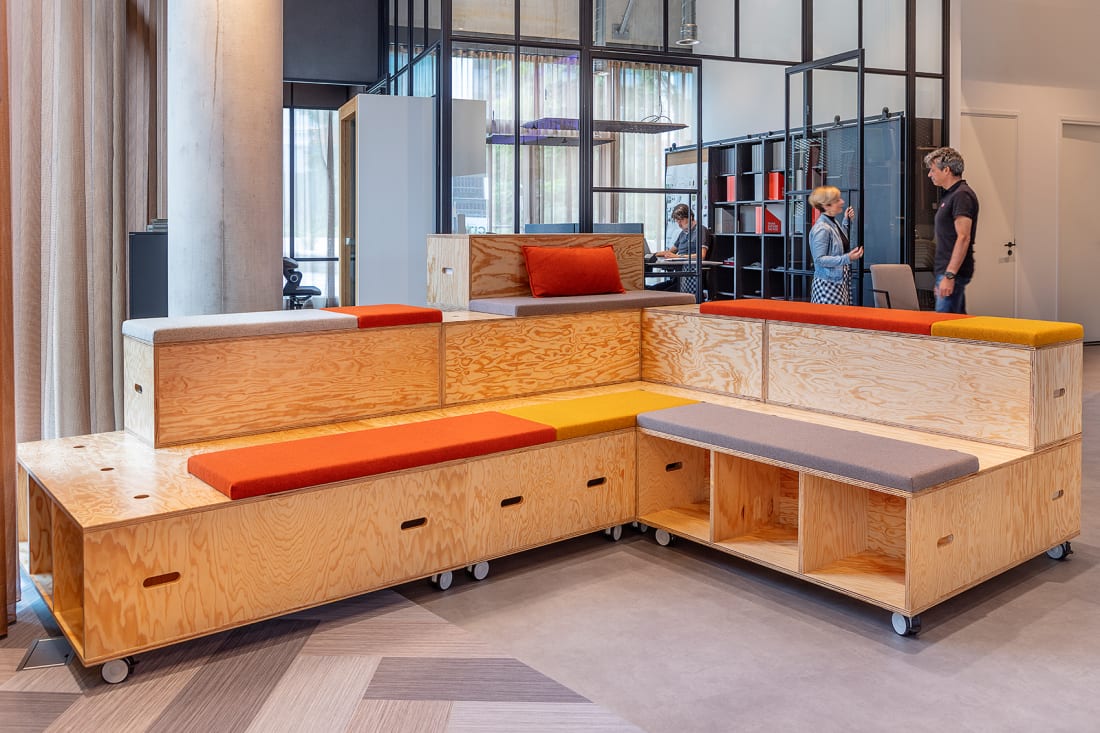 Auf über 320 m² werden in Amsterdam ganzheitliche, vernetzte Einrichtungslösungen für individuelle Arbeitskulturen präsentiert. Der Showroom beeindruckt durch die wohnliche Inszenierung von unterschiedlichen Arbeitsplatzsituationen. Die offene Gestaltung, wurde gemeinsam mit verschiedenen Kooperationspartnern wie Artemide, Kvadrat, Forbo, Limid, Minimal Steel und B-TOO realisiert.