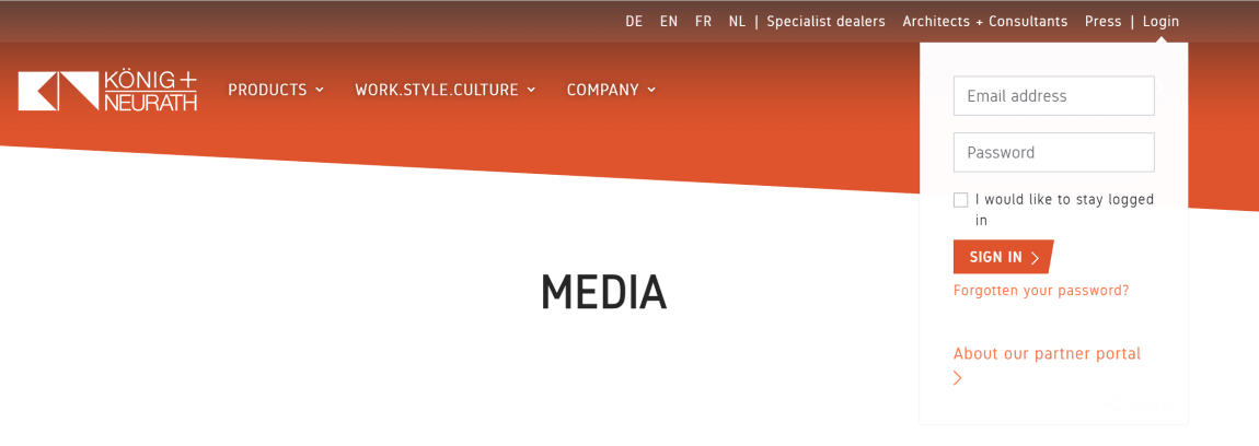 With our König + Neurath Partner-Portal, we have created a platform where specialist retailers, architects, planners and other business partners can find the most important data and tools to help us work together smoothly – such as ordering and delivery services, useful templates and the ability to order advertising materials.