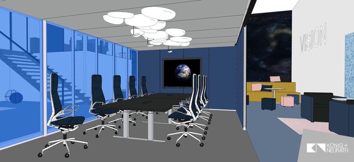"For me, PANTONE Classic Blue 19-4052 evokes associations with the endless expanse of the evening sky, creating an elegant backdrop for shades with a sophisticated sparkle, just like glittering stars in the desert twilight," - that's how Carina Hölzer describes the impression made on her by this trend colour. "In the Vision style collection, the Classic Blue colour creates an illusion of space. The synergy of dark hues with metallic details highlights these sparkling elements even more as they have less depth, giving them an iridescent appearance. If the spatial effect is enhanced further with innovative technologies, this creates an inspiring environment for dynamic meetings."
