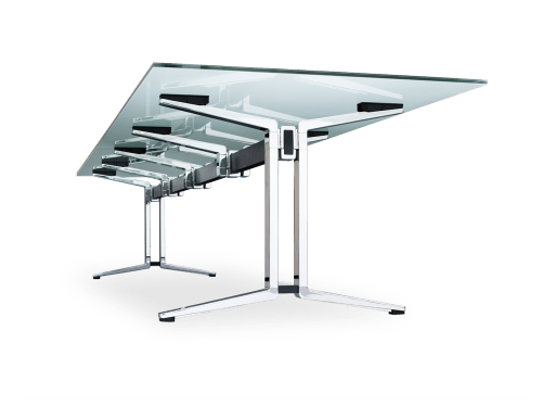 Une table pouvant accueillir de nombreuses personnes. Avec une envergure pouvant aller jusqu'à quatre mètres, PLENUM.K offre une grande liberté de mouvement et permet d'utiliser des médias modernes. Le tout avec une belle esthétique : en forme bateau, rectangulaire, ovale ou comme table emboîtable sur roulettes.