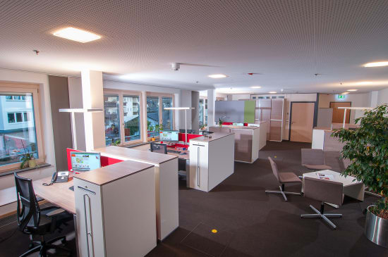 De werkplekken worden aangevuld door de kantoordraaistoelen OKAY en CHARTA, die door hun mechaniek een comfortabel en ontspannen zitten garanderen. De opbergelementen van de ACTA.PLUS serie structureren de teamwerelden. De apothekerskast schept niet alleen plaats voor de documenten direct op de werkplek, maar biedt gelijktijdig visuele bescherming. De conferentiezones zijn met PLENUM.K, SUMMA en met de conferentiestoel AGENDA gemeubeld.