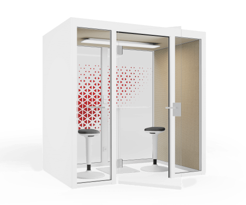 Richt uw kamer in volgens uw wensen! Met de QUIET.BOX Duo XL kan je kiezen uit een brede waaier aan decors, stofkwaliteiten en uitrustingsvarianten. Of het nu gaat om een duidelijke designtaal of dynamische rondingen in "organisch" design - laat uw creativiteit de vrije loop en creëer een inspirerende ruimte voor vergaderingen en discussies.