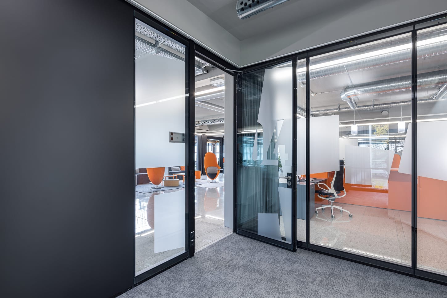 Al even mooi: de frameloze glasarchitectuur van moderne kantoorgebouwen kan door de ‘flush glazing’ bouwwijze van de TWO.2.BLOCK glasmodules worden toegepast in het kantoorinterieur.